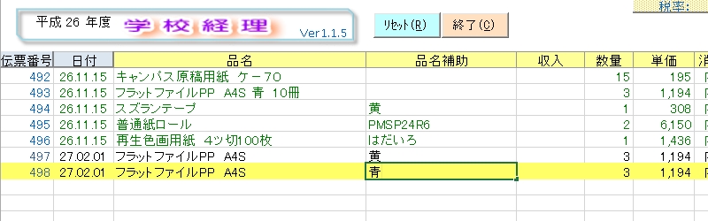※コピー済みの品名欄などを訂正する場合は、通常のダブルクリックなどでも構いませんが、[F2]キーを押してから訂正する方が確実です。